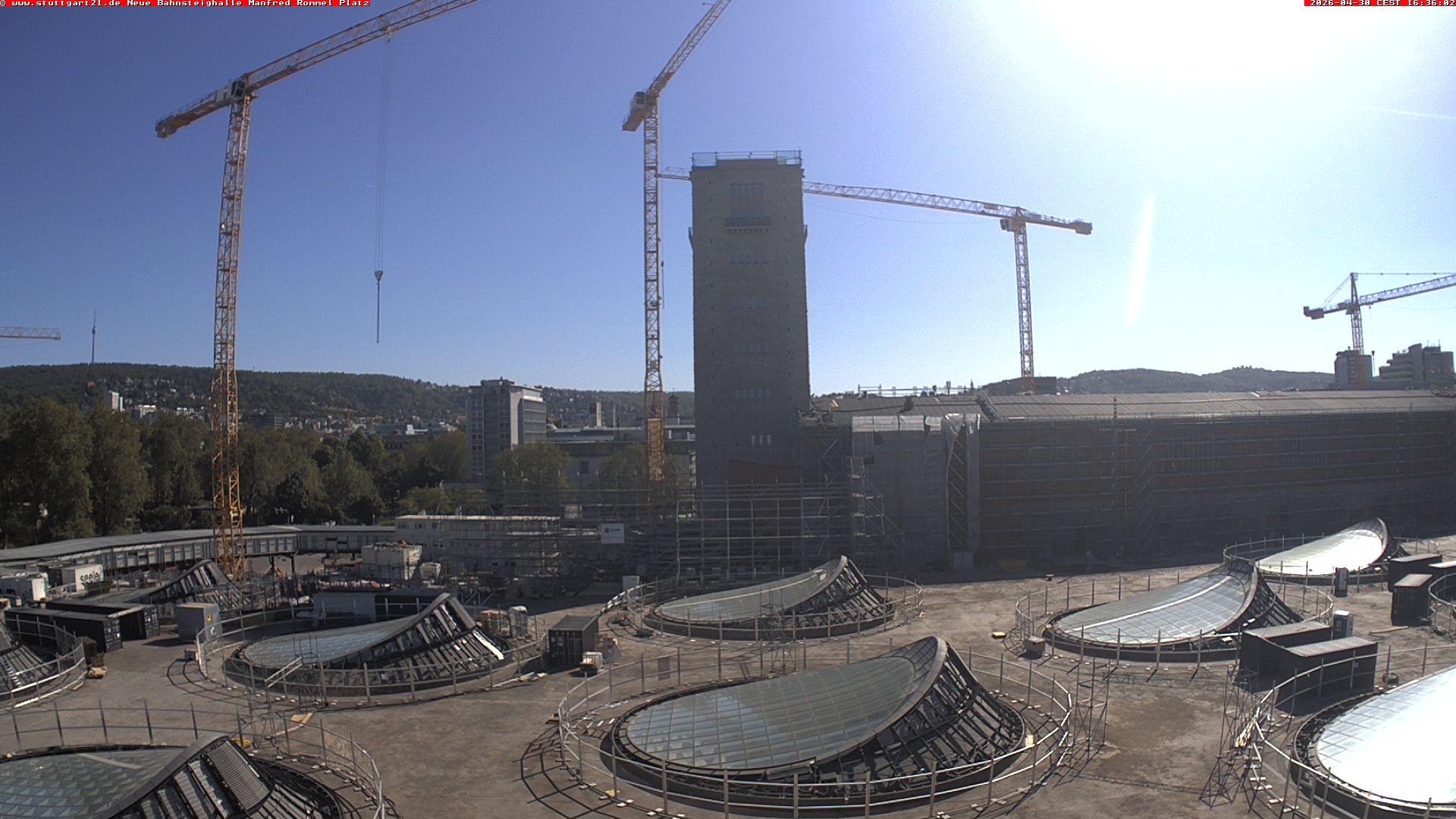 Erlebt die spektakuläre Aussicht unserer Besucherplattform auf dem InfoTurmStuttgart auch von zu Hause und erkundet die Baustelle am Stuttgarter Hauptbahnhof hautnah.
